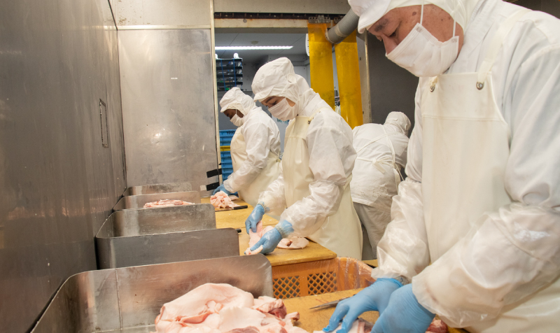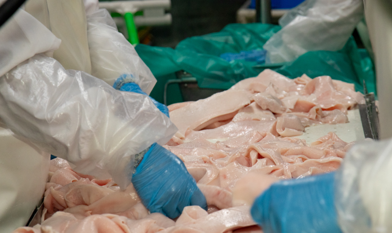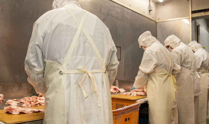 豚脂洗浄の機械やコンベアーでの集中検品をすることによって